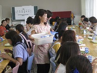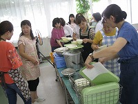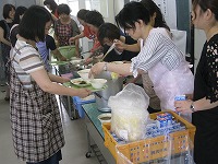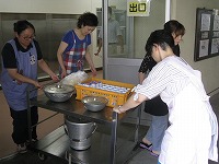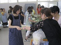 説明を受けたあと、生徒たちと同じように、手を洗い、給食調理場から会場のランチルームに給食を運搬し、配膳していただきました。さすがはお母さん方です。手際よくきれいに配膳されていました絵文字:良くできました OK