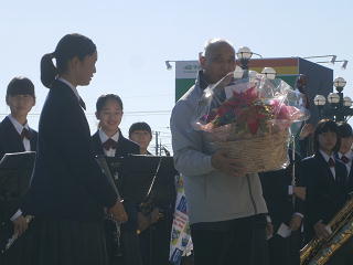 ◯まず、部長よりあいさつ、そして校長先生から部長へ花束を渡して演奏開始