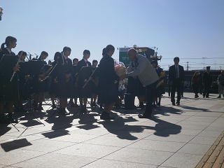 吹奏楽部の生徒と保護者の方々が、駅周辺のゴミ拾いを行ってからの演奏となりました。