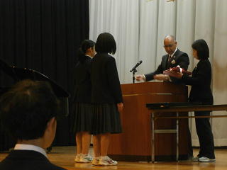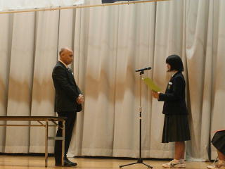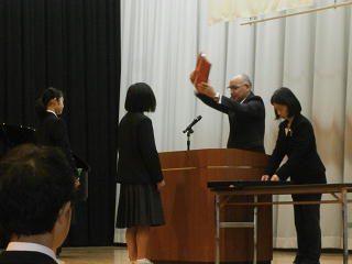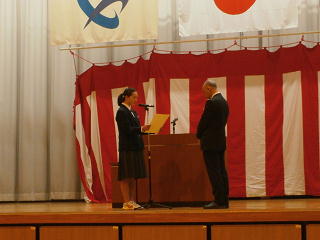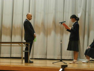 まずは、生徒会長より卒業証書授与、そして卒業生(校長先生)答辞
