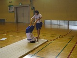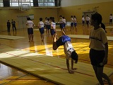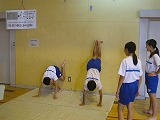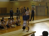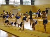 倒立前転のうまくいかない動きと類似運動で感覚を身に付けることで、倒立前転を上達させるという、体と頭を使った学習を行っていました。その成果は今日の授業の中でも見られました。できるためにどうしたらよいか、練習し鍛える楽しさを味わえる授業となっていたようです。