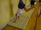 今日の授業のねらいは、「自分に合った練習方法を選択して倒立前転を上達させる」ことです。自分の状況をとらえ、何をどうしたら倒立前転が上達するのかを考え、自分にあった練習方法を選ぶという、「分かる」と「できる」を「考える」ということでつなぐ学習です。