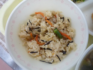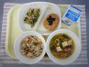 鶏ごぼうご飯 コロッケ 沢煮椀