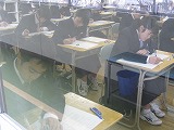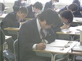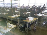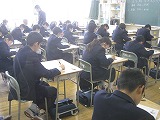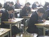 1年生は1年生と受ける最後のテスト、2年生は2年生として受ける最後のテストです。平成30年度に1年生として、2年生として、学んできたことがどのくらい身に付いているか、一人一人が自分の学びを試す機会です。『試験』のどちらの漢字にも『ためす』という意味があります。テストを受けている様子を見ていると、どの生徒も全力で今の自分の力を試していたように見えました。