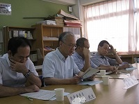 まず、本校生徒の状況や本校の取組について、体育科・学校栄養士・養護教諭から報告し、学校医・学校歯科医・学校薬剤師の先生方から助言をいただきました。