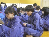 明日は、1月から続いてきた高校入試の最後と言ってもいいでしょう。これまでに私立高校への合格を決めている3年生もいますが、3年生全員が集まって明日の県公立高校入試に向けた直前指導を聞きました。