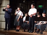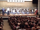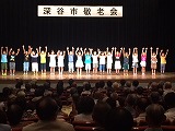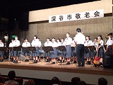 その後、たくさんのアトラクションが披露され、第2部のフィナーレを飾ったのが,深谷中の新・吹奏楽部の演奏でした、これまで3年生に頼ってきた2年生・1年生が、3年生から離れて初めての演奏は、これまで地域を支え発展させてきてくださったお年寄りへの感謝の気持ちを表すものとなりました。まだまだ未熟な演奏だったかもしれませんが、気持ちのこもった素敵な演奏でした。