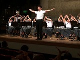 「青い山脈」の演奏を終えた後、中澤先生に促され2年生の新部長が挨拶をしました。そして3曲目「ヤングマン-YMCA-」の演奏が始まり、途中には、みんなで「Y]「M」「C」「A」のポーズをとって、会場が一体になる素敵なコンサートとなりました。