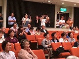 大寄地区敬老会は、第1部で「式典」で、市長さんのご挨拶や市議会議・県議会議員さんからのお祝いの言葉などがあり、第2部が「アトラクション」というプログラムになっています。その「アトラクション」のはじめを飾るのが大寄小学校の1年生による、「雨ニモ負ケズ」の暗唱と、「手のひらを太陽に」と「しあわせなら手をたたこう」を手話を付けての斉唱でした。