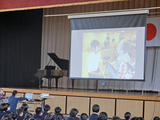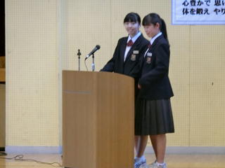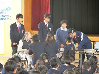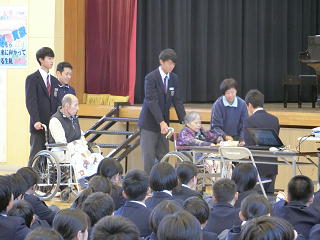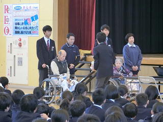 10月20日に福祉委員会の企画による、特別養護老人ホーム「ふじさわ苑」の利用者の方との交流会が行われました。日頃、お年寄りの方と接する機会が少ない生徒が多い中、この会が「福祉の心」(みなが幸せで豊かな生活を送るためには、自分は何ができるかを考える心)を育てていくきっかけになればいいな、と思いました。