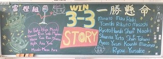 “一生に一度”の今年度の体育祭への意気込みは、各教室の黒板にも見られました絵文字:笑顔 これまでみんなで積み重ねてきた練習とクラスへの想い、学年への想い、深中への想い・・・。そうした本気の想いを全力で発揮するその日の朝、それぞれのホームルーム教室に入って目にするものは・・・