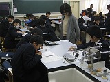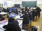 2月21日(木)、昨日から期末テスト前で部活動休止期間になっています。放課後の校庭も体育館も武道場も静かです。しかし、ランチルームと理科室には、たくさんの生徒が集まっています。今年度の最後のテストとなる期末テストに向けたステップアップレッスンが行われているのです。