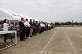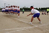 元気なかけ声に合わせて整って入場した駆け足行進、整列、体操、集合。お忙しい中、駆けつけてくださった市長さんからの激励の言葉も、体育祭に臨む深中生のパワーとなりました。