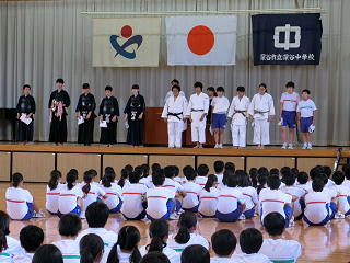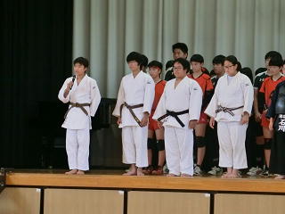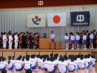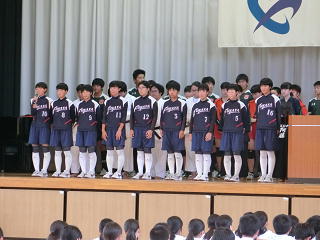 今日からラグビーの県大会が始まります。その後、ソフト、水泳、バレー、剣道、柔道と県大会が続きます。そこで、遅ればせながら、先日の学校総合体育大会予選の表彰集会と県大会壮行会の様子をアップします。みなさん、応援をよろしくお願いします。