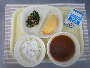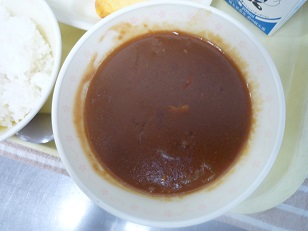 給食のハヤシライスでパッと明るくなりました