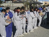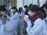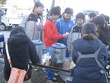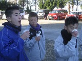 始まったころは穏やかな天候でしたが、次第に赤城颪(おろし)が冷たく強く吹いてきて、乾いた土を巻き上げることもありました。そんな中でも、お母さんたちが用意してくださる温かい飲み物が、また生徒たちを笑顔にしてくれました。