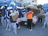 開会にあたり、今日集まってくる資源は、生徒の皆さんのご家庭はもちろん、地域の方々の「深中生を応援したい」という思いそのものだという話を生徒たちにしました。生徒たちは、PTAの役員さんたちが回収してくださった段ボールや古新聞などを運ぶ仕事にとても積極的に、また笑顔で取り組んでくれました。集まってくる資源には、自分たちを応援してくれている方々の温かい想いが込められているを理解してくれているようで、見ていても嬉しくなりました。