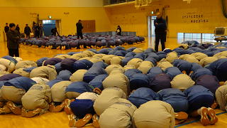 1月10日(水)に今年度4回目の避難訓練を実施しました。今回は体育館で集会を開いている際に地震が起こったという想定での避難訓練でした。深谷市の地域防災指導員の方からお話しを聞き、終わったところで地震発生!教室では机の下にもぐりますが、体育館では・・・
