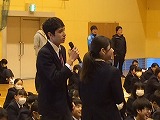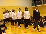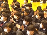 給食委員が先導して調理員さんたちが入場してくると、全校生徒が大きな拍手で迎えます。