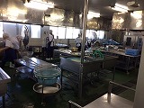 今日の給食の準備に取りかからなければならないので、調理員さんたちはここで退場です。早速みんなの大好きなカレーの調理に取りかかっていただくそうです。