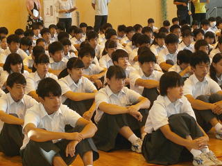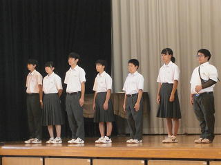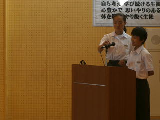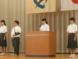 本日の生徒朝会は新人戦に向けての壮行会でした。ステージ上で、各運動部の部長から、新人戦に向けての意気込みが語られました。それぞれの部が、積み重ねてきた力を発揮できるといいですね。