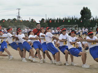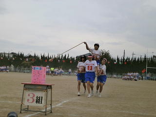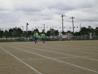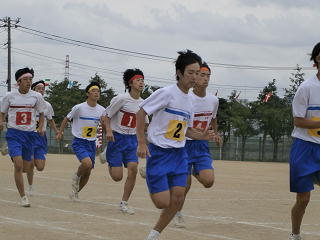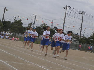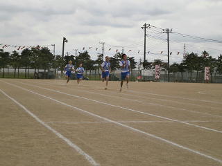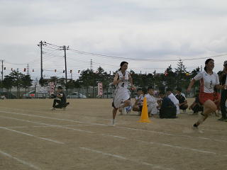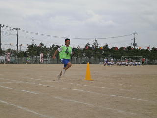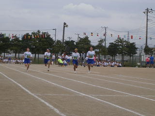 男子の部には職員チームも参加。校長先生がアンカーでゴールテープを切りました。