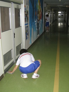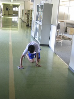 毎朝、当番の部活動が朝清掃をしてくれていますが、今朝は女子バレーボール部が黙々と校舎内を綺麗に磨いてくれていました。