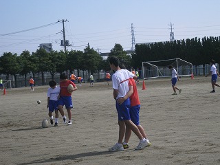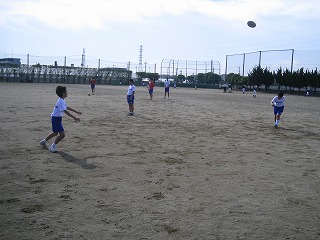外では、五月晴れの青空の下でいろいろな部が元気よく活動してます。3年生がよく1年生を教えてくれ、1年生にも「らしさ」が見られるようになっています。