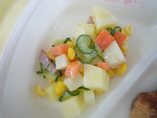 調理員さんがさいの目切りにしました。