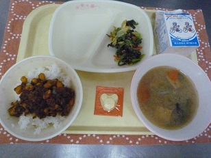 給食室に向かう途中の廊下から、今日はカレーのいい香りがしてきました。