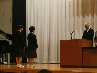 3年生が本日、修了式を迎えました。埼玉県児童生徒表彰(河田璃子さん)、埼玉県体育協会体育優良生徒表彰(川北帆香さん)、三箇年皆勤者表彰30名の表彰後、修了式が始まりました。学年代表の村上航太くんが修了証を校長先生から授与され、学年委員長の倉石花暖さんが、将来への希望や周囲の方への感謝を語り、校長先生からは修了式の言葉として、「指の教え」と「はなむけの歌」をいただきました。