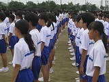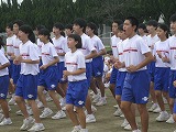 最上級生である3年生は全校のリーダーでありお手本です。体育委員長が全校に指示を出し指導をし、3年生がお手本を示し、2年生・1年生が続きます。