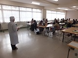 12月1日(土)の授業公開の日には「マイランチデー」として、生徒たちが自分で作ったお弁当を持参しました。その取組を通して各ご家庭でも「食事」や「調理」について話題にのぼることも多くなったようです。栄養士の「深谷中の学校給食について」の話を、熱心に聞いていらっしゃる様子を感心して見ていました。