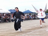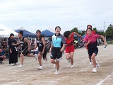 昼休みを終え、午後の最初を飾るのは、部活動対抗リレーです。引退した3年生が久しぶりに揃ってユニフォームや練習着等を身に付けた姿を、各部の後輩たちはもちろん、保護者の方々も楽しみにしていたようです。本部付近にはカメラやスマホを手にした保護者の方々でいっぱいになりました。