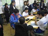 授業は「校内音楽会に向けて」の話し合い活動でした。たくさんの先生方が見に来られたので、緊張してあまり話せないのではないかと心配したのですが、杞憂でした。生徒たちはたくさんの先生方が自分たちを見に来てくれたことをまるで喜んでいるかのように、かえっていつもより活発に話し合い活動に取り組んでいました。その様子を見て、先生方は「すごいね」と驚いていました。