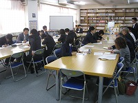授業参観の後は、図書室で研究協議が行われました。参加された先生方はどなたも、深中の生徒たちが頑張れる理由を、熱心に話し合っていました。