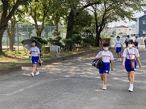 絵文字:朝 まだ暑い朝ですが 元気に登校 絵文字:晴れ