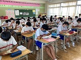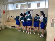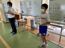 マスクをして水筒を持って、半袖・短パンの体操服という涼しい服装での登校です。まだ帽子をかぶってくる生徒は少ないですが、日傘を使っている生徒が少しずつ増えてきました。天気予報やこれまでの経験など様々な情報を踏まえて、各自がしっかり判断し行動できるしていきたいです。こういう天候なので帽子をかぶるという判断と行動もためらわないでほしいと思っています。