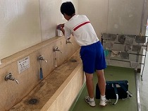 各学年のフロアーでは、保健委員が「手を洗ってから教室に入りましょう!」という声がけをしてくれています。コロナウイルス感染を予防するためには、マスクの着用と手洗いが大変効果があるそうです。手を洗う必要性や意義を理解し、自分で考え判断して、各活動の前後には手を洗う習慣を身に付けていってくださいね!