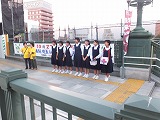 深谷駅では、深中の他にも、幡羅中や上柴中、南中の生徒、それに深谷小の児童も募金活動をしていました。