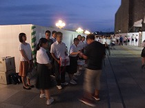 夕方の6時には空はすっかり暗くなり月や星の輝いていました。駅の灯りも夜空の瞬きも、この時は募金活動をする姿も募金に応じてくださる姿も優しく温かく浮き上がらせてくれているようでした。