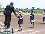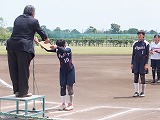 閉会式で優勝の賞状と優勝カップを受け取り、登録メンバー全員でベース1周し、たくさんの役員や観客の方々から大きな拍手を贈られました。その姿をベンチ入りできなかった1年生たちがじっと見つめていました。きっと、来年は自分もあの中に入って・・・という気持ちであったのではないでしょうか。