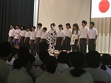 文化発表会では体育館の席は3年生が一番前です。その3年生の背中を2年生が、そして2年生とその前の3年生の背中を1年生が見つめながら、発表を見学します。先輩の背中を通して深中生としての在り方や深中の文化を引き継いでいく、そうした行事でもあると感じた第40回文化発表会でした。