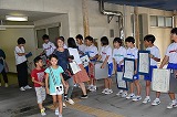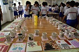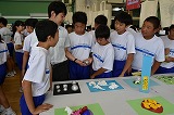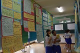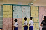 【展示見学:各行事への取組や日常の授業で作成した作品も・・・この見学で上の学年への期待や意欲が膨らみます】