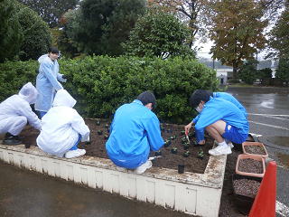 10月21日、台風目前の雨の中、第2回花✳はなプランを実施しました。環境美化委員会、小暮会長様を始め、PTAの環境整備委員の皆様を中心に花壇が一新されました。ありがとうございました。もう、誰が誰やら分からない状態ですが、活動の様子をご紹介いたします。