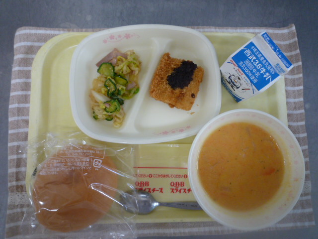 26日の給食【豆乳キャロットスープ】