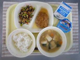 6日の給食【豆腐ハンバーグ】