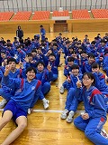 入学試験のプレッシャーから解放された3年生は、朝から深中生として最後の球技大会に臨みました。会場は仙元山のもとにそびえる深谷市総合体育館 Big Turtle です。私が朝、深中に向かう途中、自転車に乗って仙元山方面に向かう何人もの3年生とすれ違いました。信号待ちをしているときに窓を開けて「おはよう!」とあいさつをすると、元気に「おはようございます!」と返してくれました。清々しい朝となりました。