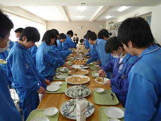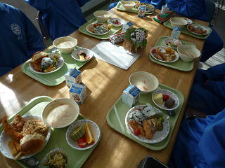 いつもと違う教室で、いつもと違うスタイルで給食を楽しんでもらいました。