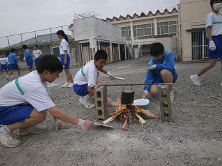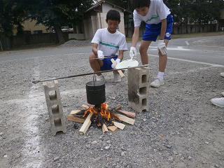 3年生が修学旅行に行っている間、2年生が深中の最高学年として頑張っています。そんな中、2年生は今日、6月6日、7日に計画されている自然体験宿泊学習で行う、飯盒炊さんの練習をしました。飯盒でごはんをといで、薪に火をつけ炊いていく・・・滅多にできない体験にどきどきわくわくな様子をご覧ください。
